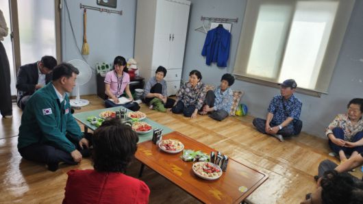 김성수 부산 해운대구청장이 17일 경로당을 방문해 무 더위에 불편한 점은 없는지 어르신들의 건강을 챙기고 있다. [사진=해운대구] 2025.07.21 |
