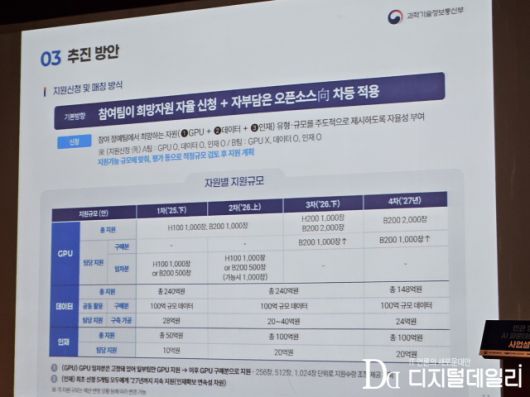 정부는 이번 사업을 통해 세계 수준의 국산 AI 모델을 선보일 수 있도록 그래픽처리장치(GPU)와 데이터, 전문 인력 등을 집중 지원할 방침이다. 오는 2027년까지 최대 3년간 정예팀에 투입되는 총 사업비 규모는 약 2136억원이다.