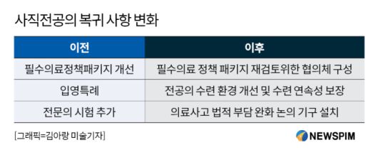 사직전공의가 입영특례와 전문의 추가 시험 등을 요구할 가능성이 있는 만큼, 3대 요구 중 핵심 조건은 '수련 연속성 보장'으로 풀이된다.