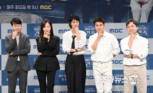 소형준 PD, 박선영 아나운서, 방송인 홍진경, 전현무, 건축가 유현준이 21일 오후 서울 마포구 상암동 MBC에서 열린 MBC 새 교양프로그램 '이유 있는 건축-공간 여행자' 제작발표회에 참석해 포즈를 취하고 있다. [사진=문수지 기자] |
