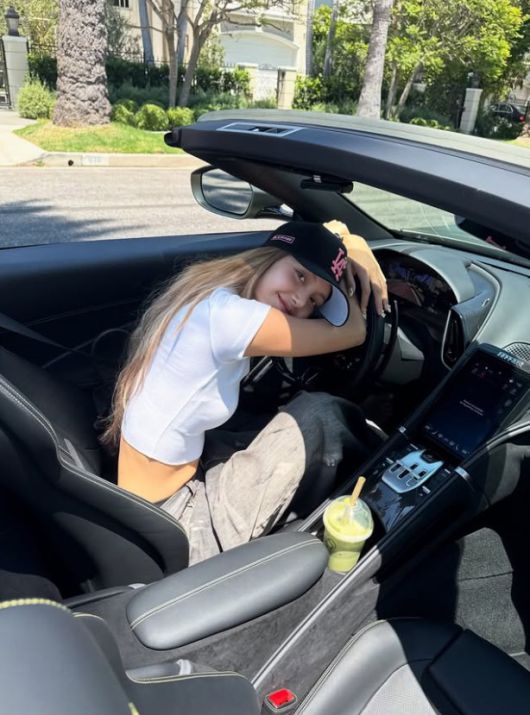 21일 리사는 자신의 SNS에 올블랙 페라리 앞에 선 여유로운 포즈의 사진을 공개했다.