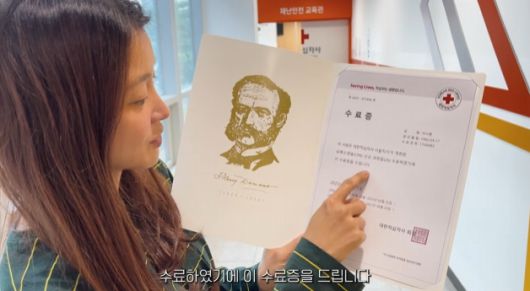 그는 "누구나 신청만 하면 배울수 있더라. 그래서 저는 신청했고 이런 자격증 취득해야하는 분, 일반인 아무상관없이 신청하면 배울수 있다. 인터넷으로 강의 보는거 두시간, 실제로 실습하는거 세시간 네시간 그정도 하면 수료증 나온다. 그리고 2년마다 갱신하면 된다더라"라고 밝혔다.
