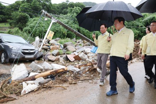 현장에서 만난 한 주민이 “공무원들이 나서서 어르신을 업고 대피해 인명 피해를 줄일 수 있었다”고 말하자 이 대통령은 “(공무원들의) 신속한 대처로 피해를 줄인 사례를 조사해달라”고 주문하기도 했다.