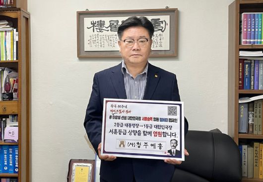 문길곤 청주예총 회장이 일제강점기 독립운동가 이상설 선생의 서훈을 최고 등급으로 승격시키자는 릴레이 캠페인에 동참했다.