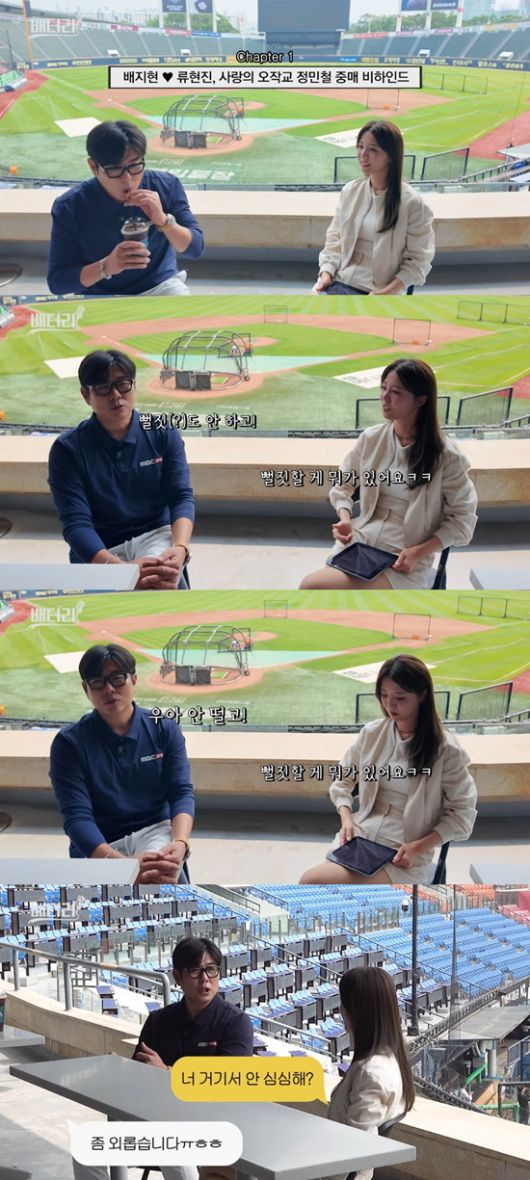 제작진이 정민철에게 "사랑의 오작교, 중매를 하셨다고. 어디서 얘기하신 적이 없다"라고 질문했다. 배지현은 "사실 위원님한테 그런 스토리를 들어본 적은 없었다. 이게 누가 먼저 관심을 보였느냐 논란이 많다"라고 덧붙였다.