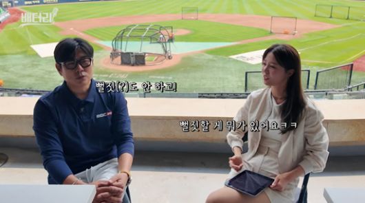 배지현 유튜브에 해설위원 정민철이 출연했다. 배지현은 정민철에게 "제가 위원님한테 이런 인터뷰를 하는 게 진짜 신기하다"라고 말했다. 정민철도 "어색하다. 우리 사실 진지한 얘기 안 하는 (사이다). 사실 맨정신에 만난 적도 거의 없다"라고 말해 웃음을 자아냈다.