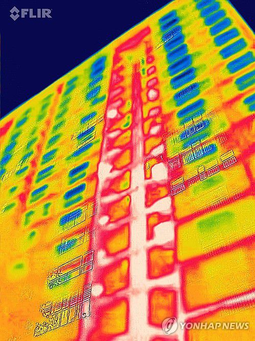 (서울=연합뉴스) 서대연 기자 = 연일 폭염과 열대야가 이어지고 있는 가운데 절기상 가장 더운 대서를 하루 앞둔 21일 밤 서울 시내 한 아파트를 열화상 카메라로 촬영한 모습.