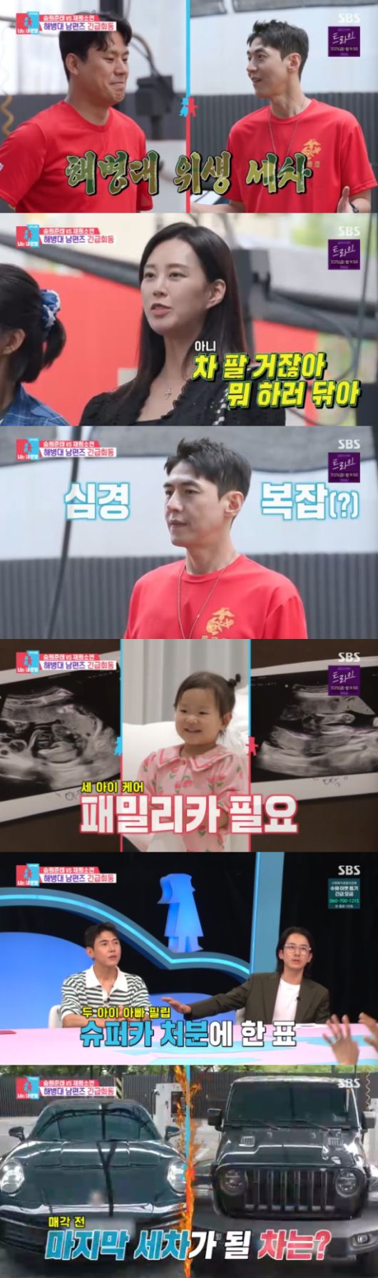 지소연은 "이제 곧 쌍둥이가 태어나니까, 오빠 차와 내 차 중에 한 대를 팔고 패밀리카를 사야한다. 그런데 오빠 차는 아이를 태울 수가 없으니까 오빠 차를 파는 것이 맞다"면서 주장했고, MC들 역시 송재희의 차를 파는 것이 맞다는 입장을 보였다.