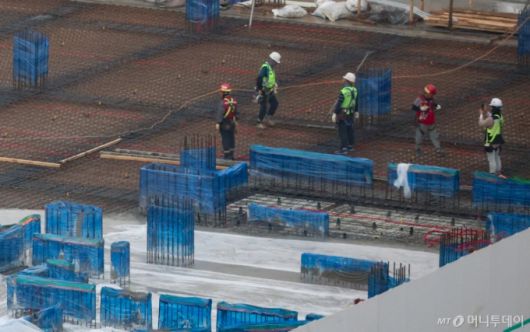 [서울=뉴시스] 황준선 기자 = 16일 서울 시내 한 공사현장에서 근로자들이 업무를 하고 있다. 이날 통계청이 발표한 '2025년 6월 고용동향'에 따르면 지난달 취업자 수는 2909만명으로 지난해 같은 기간보다 18만3000명(0.6%) 증가했지만 건설 경기는 불황이 이어지며 건설업 취업자는 9만7천명이 감소하며 14개월 연속 하락한 것으로 나타났다. 2025.07.16. hwang@newsis.com /사진=황준선 |