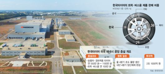 업계 관계자는 “TBR 타이어의 판매 단가는 일반 승용차 타이어의 5배 정도 높아 매출 증가에 큰 도움이 되지만 경기 영향을 많이 받는 제품군”이라며 “현금력을 갖춘 한국타이어가 TBR 타이어 시장의 성장 가능성을 보고 미국 현지에서 풀라인업을 구축하는 것으로 보인다”고 말했다.