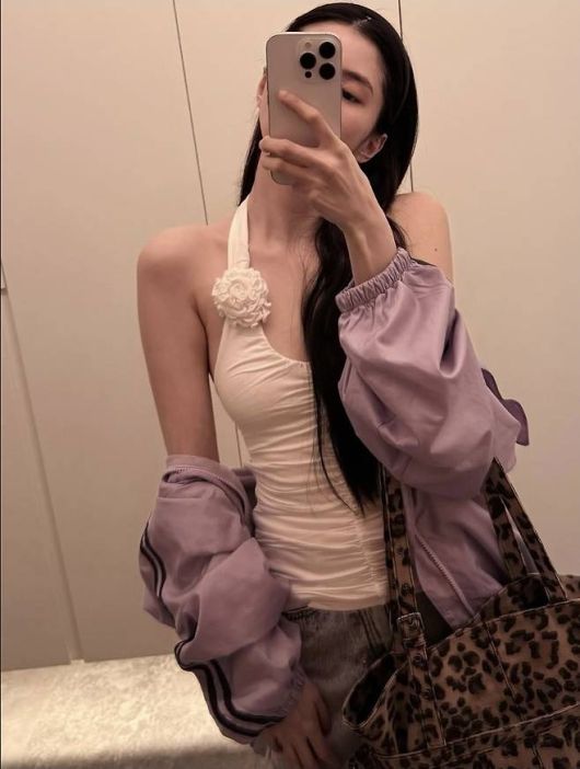 반면 엘리베이터 셀카에서는 타이트한 크롭 니트와 로우라이즈 청바지로 힙한 Y2K 스트릿룩을 선보였다. 허리 라인을 살짝 내린 포즈로 타투와 탄탄한 복근을 드러내며 쿨한 반전 매력을 발산했다. 쨍한 레드 선글라스와 레오파드 백팩이 과감한 포인트로 더해졌고, 심플하면서도 파워풀한 스타일이 눈길을 끌었다.