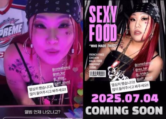 이어 햄부기의 'Sexy Food' 노래를 열창했다. 그는 지난 4일 첫 힙합 싱글 타이틀곡을 발매하며 본격적인 음악 활동에 나섰고, 붉은 헤어스타일과 타투 스티커, 체인 목걸이로 완성한 스트리트 힙합 룩으로 기존과 다른 분위기를 풍기며 부캐릭터 활동을 이어갔다. 앞서 이수지는 대치맘인 '제이미맘'부터 무당, 인플루언서 등으로 분해 높은 화제성을 자랑한 바 있다.