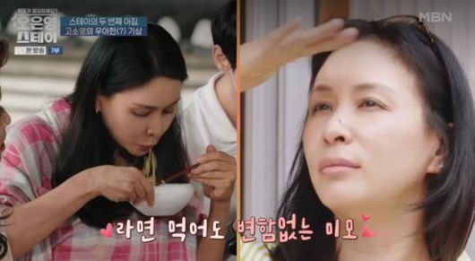 전날 밤, 고소영은 야식으로 라면을 먹으며 “따뜻한 걸 먹어서 좋다”며 국물까지 시원하게 들이켜는 소탈한 면모를 보였다. 수수한 차림에도 여전히 고소영다운 우아함이 묻어났다.