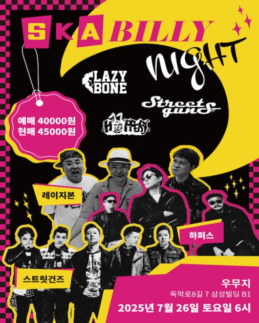 국내 스카펑크와 로커빌리 대표 밴드들이 한 무대에 오른다. 레이지본, 스트릿건즈, 하퍼스는 7월 26일 토요일 서울 홍대 공연장 우무지에서 장르 통합 공연 '스카빌리나잇'을 개최한다.