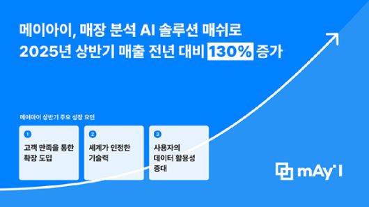 [아이뉴스24 문영수 기자] 영상처리 인공지능(AI) 스타트업 메이아이(대표 김찬규)는 2025년 상반기 매출이 전년 동기 대비 130% 이상 증가했다고 22일 밝혔다.