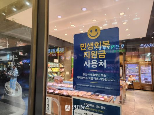 파리바게뜨 매장에 '민생회복 지원금 사용처' 포스터가 부착된 모습. 사진ㅣ인더뉴스 |