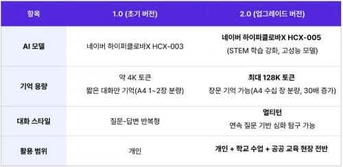 이번 2.0 버전에는 네이버의 최신 AI모델 ‘하이퍼클로바X HCX-005’가 적용됐다. 이 모델은 기존 HCX-003 대비 연산 최적화가 이뤄져 동일한 컴퓨팅 자원으로도 더 빠르고 정확한 답변을 만든다. 특히 과학·기술·공학·수학(STEM) 분야 데이터를 중점적으로 학습해 복잡한 과학 개념에 대한 이해도와 답변의 전문성이 대폭 향상됐다.