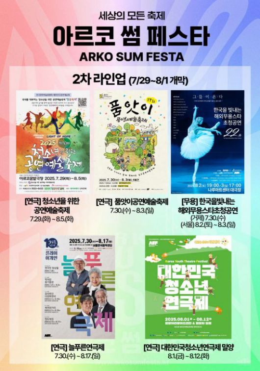 한국문화예술위원회가 공연예술 축제 통합 브랜드 '아르코 썸 페스타(ARKO SUM FESTA)'의 2차 라인업을 공개했다.