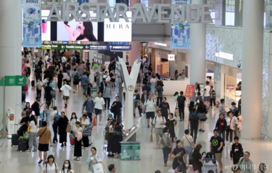 인천국제공항 1터미널 출국장 면세구역이 해외 여행을 떠나려는 여행객들로 붐비고 있다. /사진=뉴스1 |