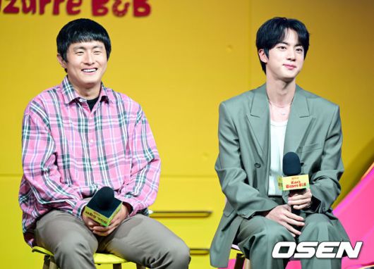[OSEN=최규한 기자] 15일 오전 서울 JW 메리어트 동대문 스퀘어 서울에서 넷플릭스 '대환장 기안장' Part 2 ‘절찬리 영업중’ 기자간담회가 열렸다.'대환장 기안장'은 기안적 낭만이 가득한 울릉도 기안장에서 기안84, BTS 진, 지예은이 숙박객들과 펼치는 기상천외한 신개념 민박 버라이어티다.방송인 기안84(왼쪽)과 BTS 진이 취재진의 질문에 답하고 있다. 2025.04.15 / dreamer@osen.co.kr |