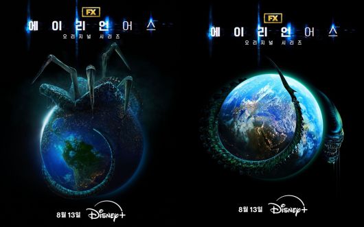 글로벌 스트리밍 서비스 디즈니+가 오리지널 시리즈 '에이리언: 어스'의 스페셜 포스터 2종을 공개했다. 포스터는 지구를 잠식해오는 외계 생명체 페이스 허거들의 위협을 담아내 소름을 유발했다.