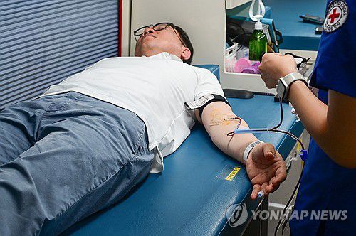 (서울=연합뉴스) 22일 서울 서초구 농협유통 하나로마트 양재점에서 임직원이 사랑 나눔 헌혈 행사에 참여하고 있다. 2025.7.22 [농협유통 제공. 재판매 및 DB 금지]