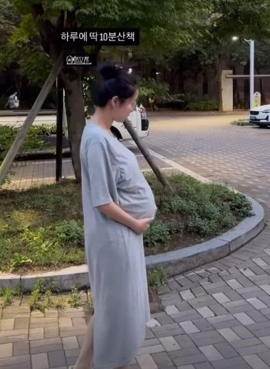 김지혜는 지난 21일 자신의 인스타그램 스토리에 "하루에 딱 10분 산책", "배가 너무 무거워"라는 문구들과 함께 하나의 영상을 게재했다.