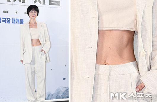 이날 참석한 우희진은 베이지 컬러의 크롭탑과 오버핏 수트를 매치한 패션으로 등장, 군살 없는 복근과 건강미 넘치는 비주얼로 현장을 뜨겁게 달궜다.