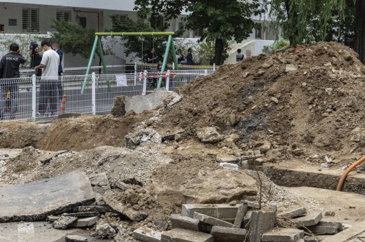 지난달 13일 오후 서울 강남구 대치동 은마아파트 하수관 교체 공사 현장에서 매몰 사고가 발생해 작업자 2명이 병원에 이송돼 60대 남성 유모 씨가 숨졌다. 사진은 사고 당시 모습 [연합] |