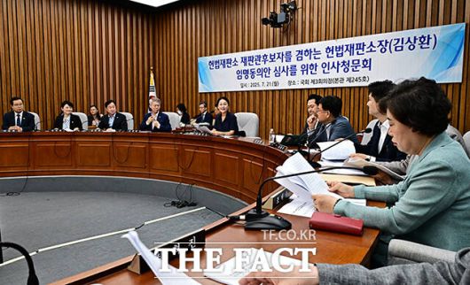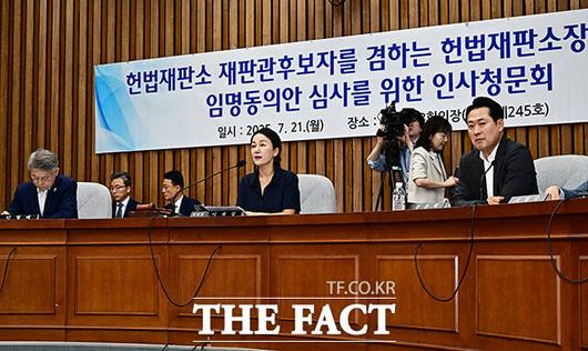 [더팩트ㅣ국회=배정한 기자] 이재정 위원장이 22일 오전 서울 여의도 국회에서 열린 김상환 헌법재판소장 임명동의에 관한 인사청문특별위원회 전체회의에 참석해 안건을 상정하고 있다.
