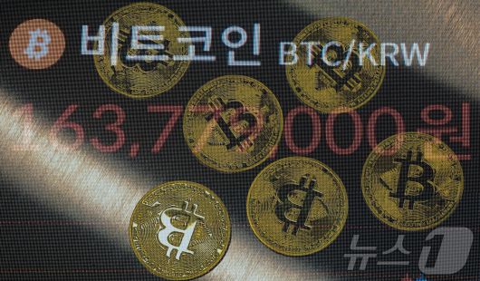 18일 오후 서울 강남구 서초구 빗썸라운지 강남본점 전광판에 비트코인 거래 가격이 표시되고 있다. 2025.7.18/뉴스1 ⓒ News1 김진환 기자 |