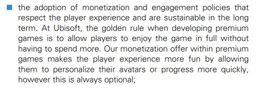 연간 재무 보고서에는 "게임 수익 창출 혜택은 플레이어의 아바타를 개인화하거나 더 빠르게 게임을 진행할 수 있도록 한다"라며 "유저들의 플레이 경험을 더욱 즐겁게 만들어 준다. 언제나 선택 사항일 뿐이다"라고 명시돼 있다.