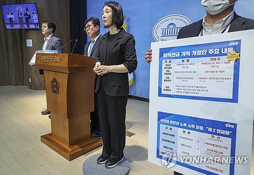 (서울=연합뉴스) 황광모 기자 = 더불어민주당 안도걸 의원이 22일 국회 소통관에서 '기금형 퇴직연금제도 도입' 법안 발의 기자회견을 하고 있다. 2025.7.22
