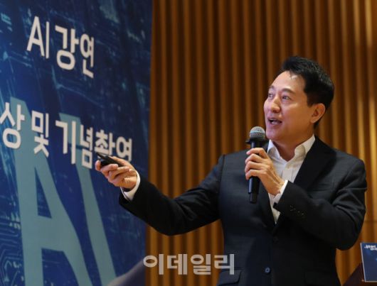 [이데일리 김태형 기자] 오세훈 서울시장이 22일 오전 서울시청 다목적홀에서 열린 ‘창의행정, AI로 제안하는 아이디어톤’ 발표회에서 특강을 하고 있다. 이날 발표회는 전문가, 서울시 직원 등 300여 명이 참석해 미래 AI 행정혁신을 견인할 ‘우수 AI 활용 아이디어’ 10건 제안 발표부터 심사, 시상이 진행됐다.