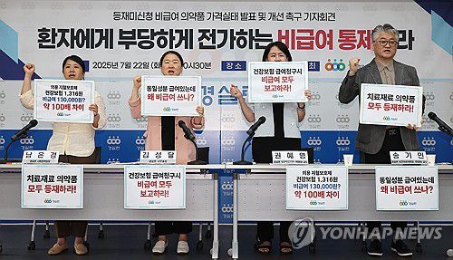 이들은 "급여가 되는 유사한 성분과 효능의 제품이 있다면 환자에 관련 정보를 충분히 제공하고 비급여 사용을 지양하게끔 하는 근본적 제도 개선이 필요하다"며 "치료재료 성격을 갖고 있지만 등재하지 않고 비급여로 쓰이는 의약품 실태를 전수 조사하고, 치료재료 성격을 갖는 비급여 의약품의 등재를 의무화해야 할 것"이라고 촉구했다.