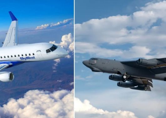 왼쪽은 스카이웨스트항공 여객기, 오른쪽은 미 공군 B-52 전략폭격기 자료사진 |