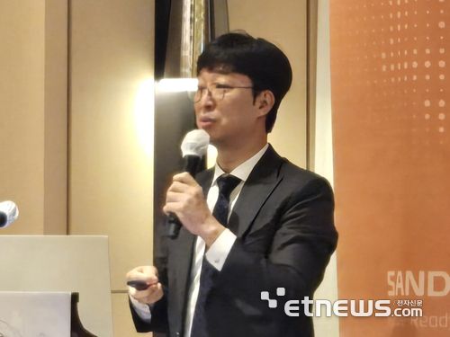 김기홍 샌즈랩 대표는 22일 오전 서울 영등포구 여의도 페어몬트 앰배서더 서울에서 열린 '개인정보 유출 알림 서비스' 출시 기자간담회에서 IDPW 서비스에 대해 설명하고 있다. |