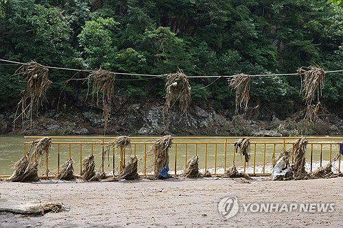 (가평=연합뉴스) 임병식 기자 = 22일 경기도 가평군 상면 덕현리에서 수해로 쓸려 내려온 부유물이 캠핑장 전구에 걸려 있다. 2025.7.22