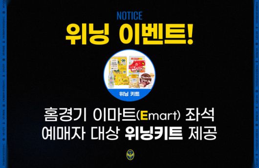 인천 구단 관계자는 "홈경기 승리를 함께 즐기고, 이기는 날엔 이마트 동인천점에서 '그날의 기쁨'을 받으시길 바란다"고 전했다. 해당 프로모션과 관련된 보다 자세한 내용은 구단 홈페이지 및 소셜미디어를 통해 확인할 수 있다.