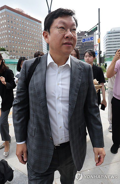 (서울=연합뉴스) 서명곤 기자 = 윤재현 참손푸드 대표가 22일 서울 종로구 KT광화문빌딩에 마련된 김건희 여사 관련 의혹을 수사 중인 민중기 특별검사팀 사무실에 출석하고 있다. 2025.7.22