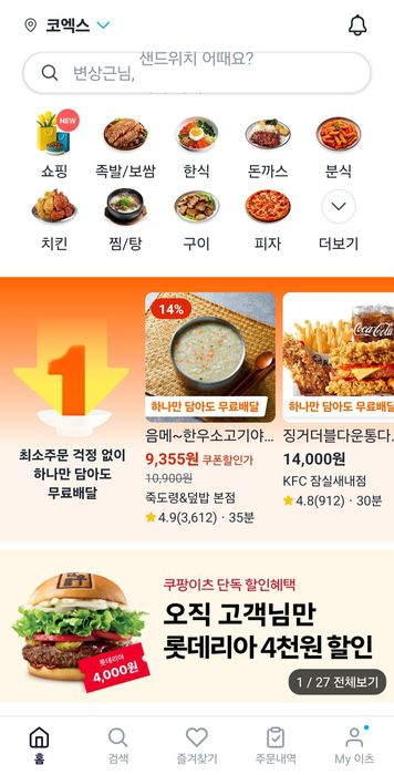 쿠팡이츠 하나만 담아도 무료배달 〈쿠팡이츠 앱 갈무리〉 |