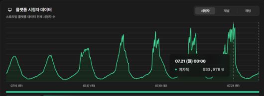 22일 인터넷 방송 데이터 플랫폼 '소프트콘 뷰어십'에 따르면 지난 21일 자정 무렵 진행된 2025 EWC 리그오브레전드 대회에서 치지직 동시 최고 시청자 수가 올해 최고치를 달성했다. 동시 최고 시청자수는 53만3978명으로, 젠지와 애니원즈 레전드(AL)가 접전 끝에 젠지가 우승컵을 들어올린 시점으로 추정된다. 이는 지난해 동시 최고 시청자 수인 43만5124명 보다 무려 10만명 늘어난 수치다.