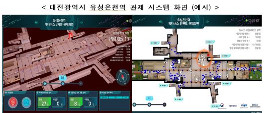 대전 유성온천역 현장 점검에서는 센서와 CCTV를 통해 화재 발생 여부와 군중 밀집 수준을 실시간 감지하고, AI 분석을 통해 대피 경로를 안내하는 시스템을 시연했다. 시스템은 열 센서, 연기 농도 센서 등을 통해 위험 발생 위치와 규모를 판단하고, 시뮬레이션 결과를 바탕으로 최적의 대피 경로를 제시한다.
