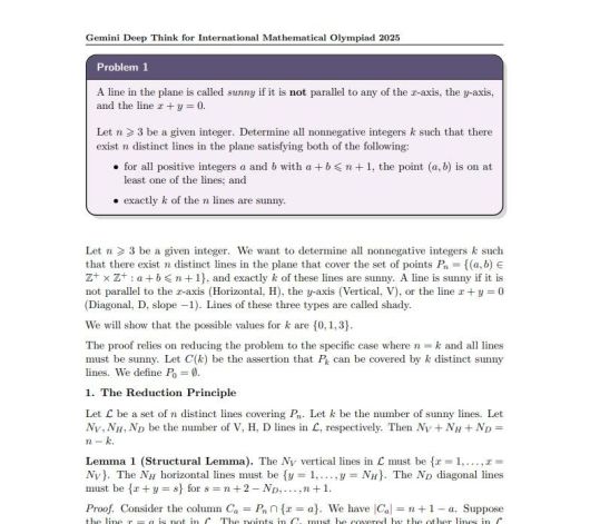구글 딥마인드는 21일(현지시간) "IMO 채점자들이 '제미나이 딥 싱크(Gemini Deep Think)'의 고급 버전이 제출한 답안을 인간 참가자들과 똑같은 조건과 채점 기준으로 평가한 결과, 42점 만점에 35점이 나왔다"고 밝혔다. 35점은 지난 달 열린 해당 시험에서 금메달 커트라인이었다.