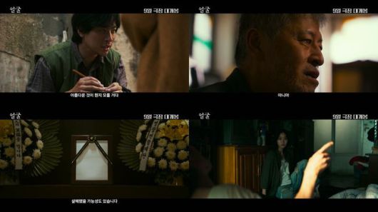 함께 공개된 1차 예고편은 1인 2역으로 새로운 도전에 나선 박정민과 배우 인생 최초로 시각장애인 역할을 맡은 권해효의 강렬한 연기가 시선을 단번에 사로잡는다. 태어나서 한 번도 세상을 볼 수 없었던 시각장애를 가졌음에도 불구하고 세상에서 가장 아름다운 도장을 만드는 장인 ‘임영규’(권해효)와 그의 아들 ‘임동환’(박정민)이 40년 전에 실종된 아내이자 어머니의 백골 사체와 마주하는 모습은 앞으로 전개될 '얼굴' 의 스토리에 대한 궁금증을 높인다. 이어 남편도 아들도 한 번도 얼굴을 본 적이 없는 ‘정영희’라는 여인의 얼굴을 둘러싼 가려진 진실과 함께, 어머니가 일했던 청계천 의류 공장의 사장 ‘백주상’으로 분한 임성재와 ‘정영희’의 죽음을 파헤치는 다큐멘터리 PD ‘김수진’으로 분한 한지현의 등장은 과거, 현재에서 각각 어떤 사건들이 펼쳐질지 기대하게 만든다.