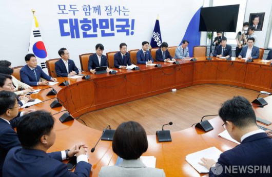 [서울=뉴스핌] 윤창빈 기자 = 김병기 더불어민주당 대표 직무대행 겸 원내대표가 22일 오전 서울 여의도 국회에서 열린 원내대책회의에서 모두발언을 하고 있다. 2025.07.22 pangbin@newspim.com |