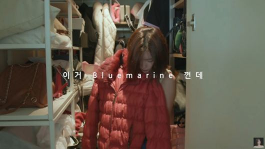 임수향이 학창시절 입었던 명품 패딩을 소개하고 있다. /사진=유튜브 갈무리 |