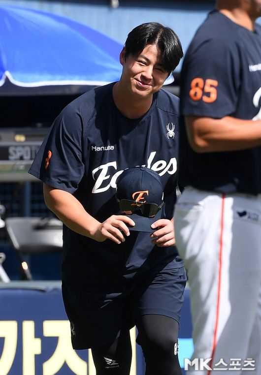 22일 서울 잠실야구장에서 ‘2025 KBO리그’ 한화 이글스와 두산 베어스의 경기가 열린다. 한화 노시환이 두산 선수들을 향해 인사하고 있다. 잠실(서울)=천정환 MK스포츠 기자 [ⓒ MK스포츠, 무단전재 및 재배포 금지]