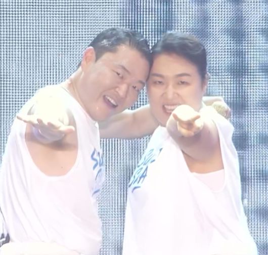 싸이와 이수지가 '흠뻑쇼' 과천 콘서트에서 무대를 선보이고 있다. [사진=싸이 SNS] |