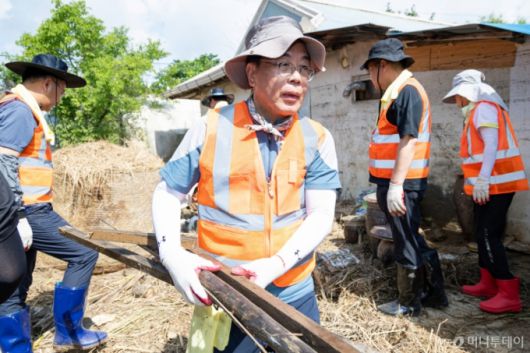 [the300] 충남 예산 찾아 수해 복구 지원…"가슴 아프다"